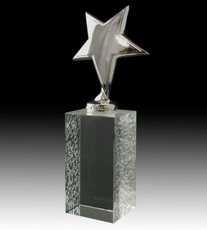 The Ariel-Silver Glass Award is a elegant celebration of achievement. With a large star on top, this award creates a radiant focal point for any award ceremony or display. The Ariel offers a modern yet timeless presence that recipients will treasure.