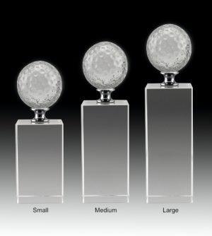 Celebrate excellence with the Fairway Golf Award. This stylish trophy features a detailed golf ball mounted on a sleek glass base. This award will become a treasured keep sake for any recipient.