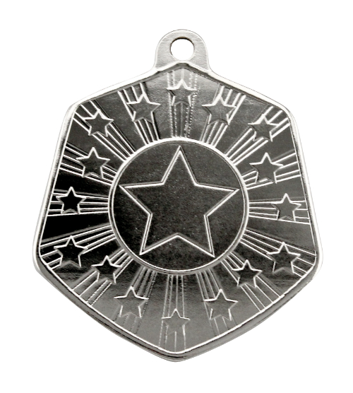 Star hexagonal medals available in Gold, Silver and Bronze.