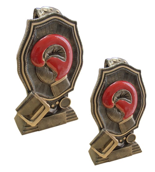 Bronze Boxing Glove & Belt trophy, molded from resin as one unit.