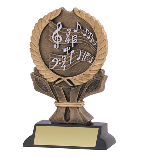 Coloured Music Trophy with music notes, molded from resin as one unit.