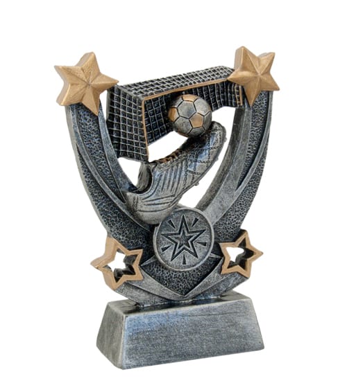 Football Trophy with antique silver finish, molded from resin as one unit.
